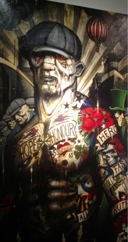 including paintings and drawings, tattoo art, a customised motorbike, multi media presentations